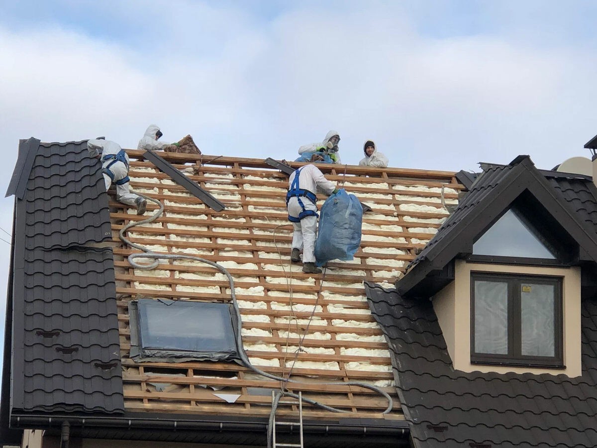 Заказать расчетКомплекс услуг включает снятие доборных элементов, антенн и других аксессуаров, покрытия, разборку обрешетки, стропильной системы и изоляции.
